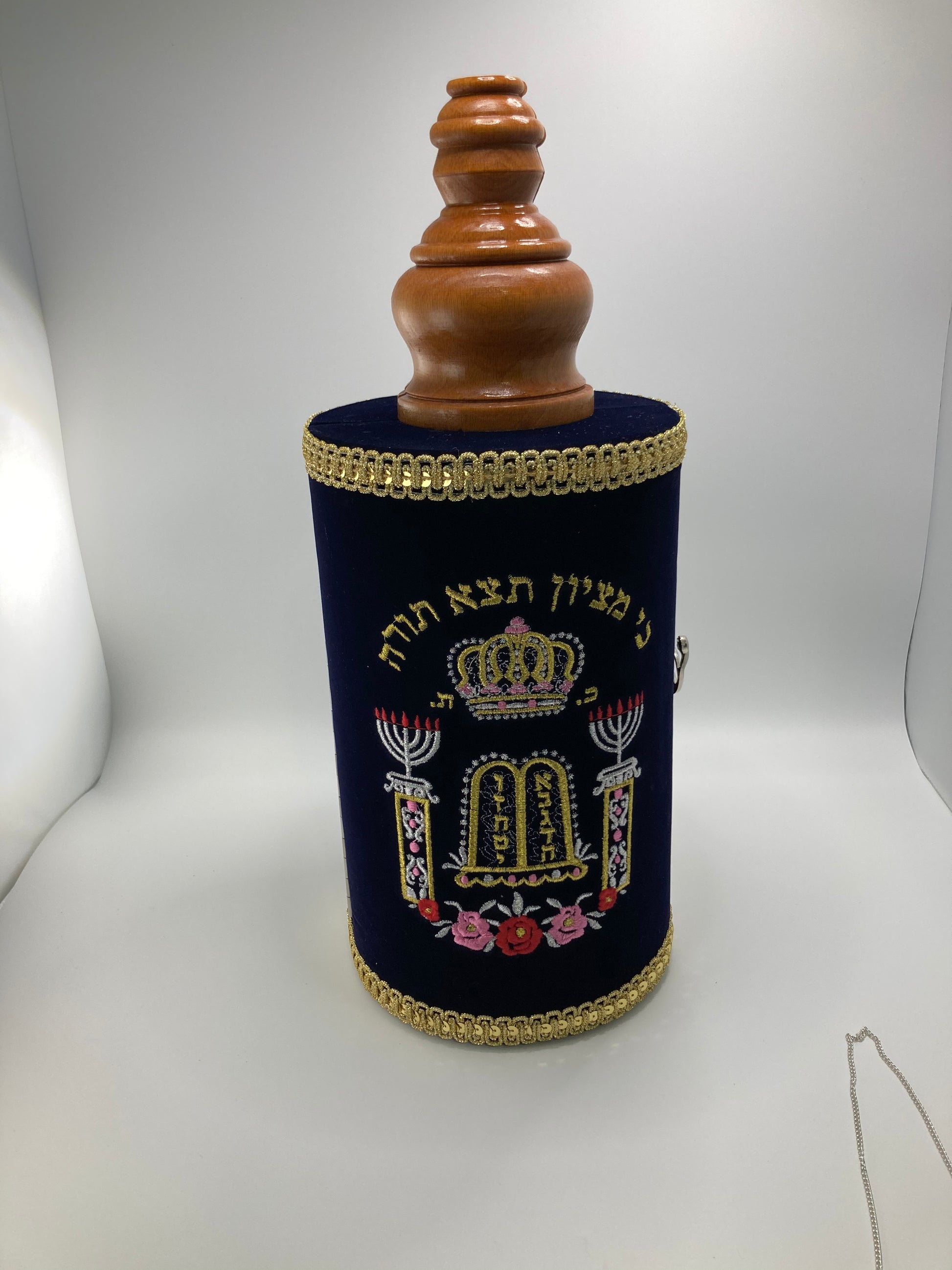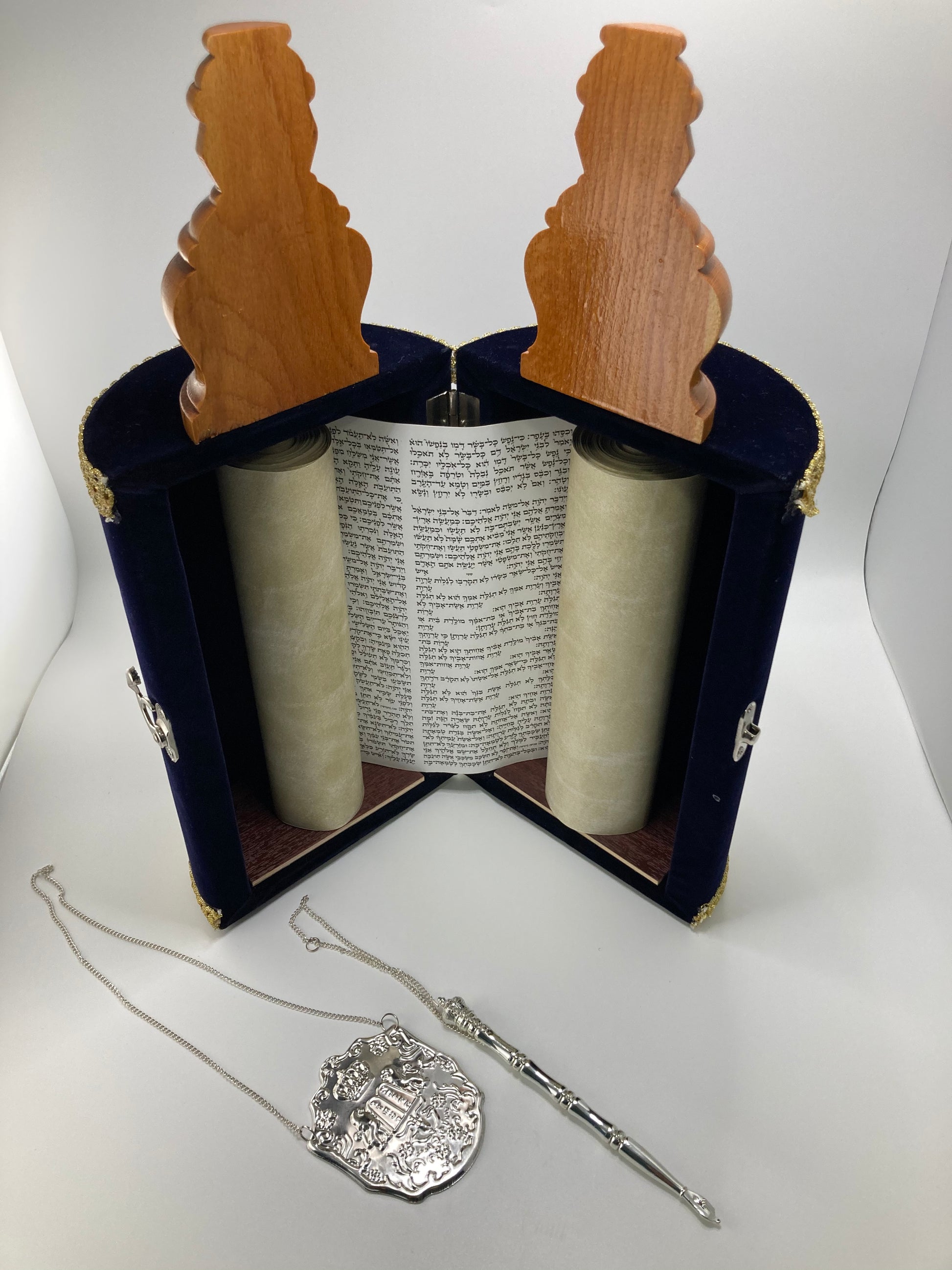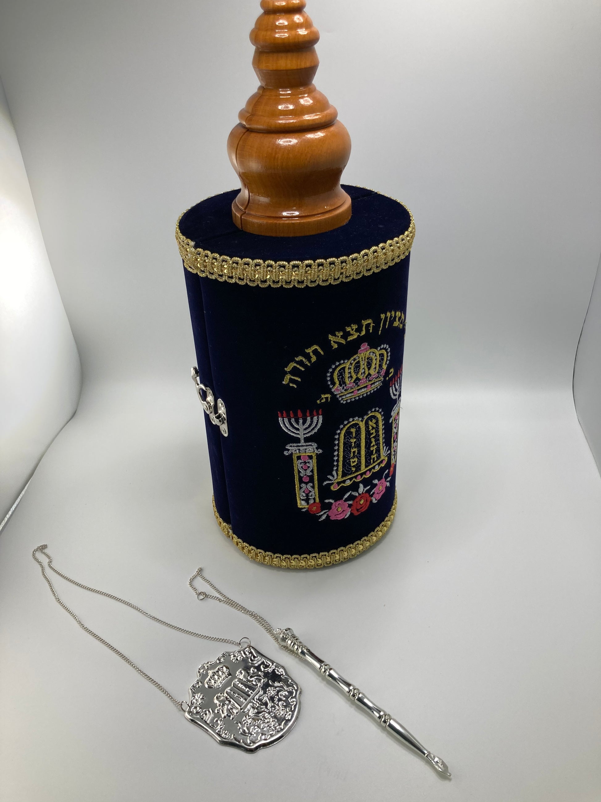 Sefer Tora tamaño grande, de madera y bordados finos include el Yad para la lecture y chapa.