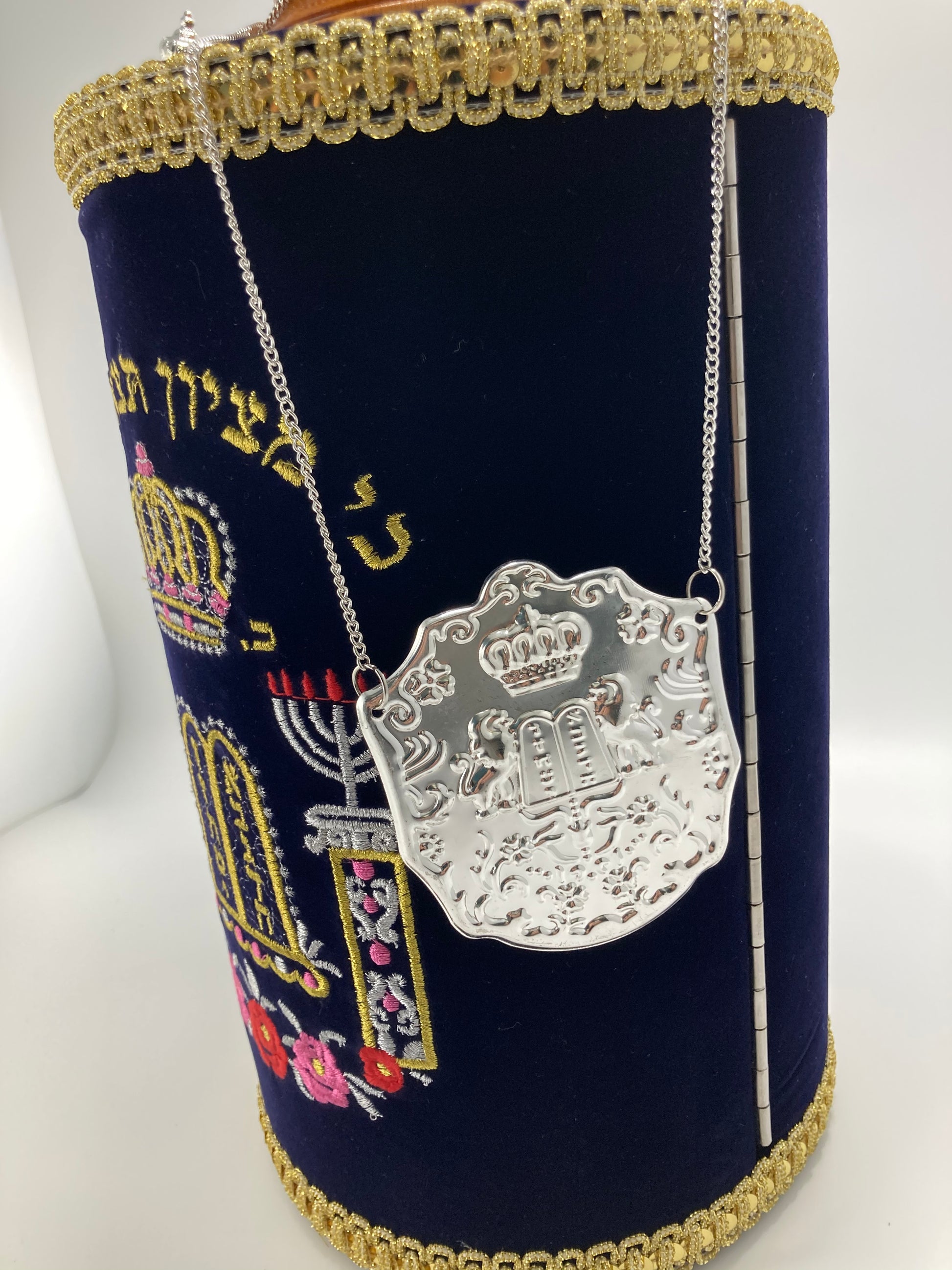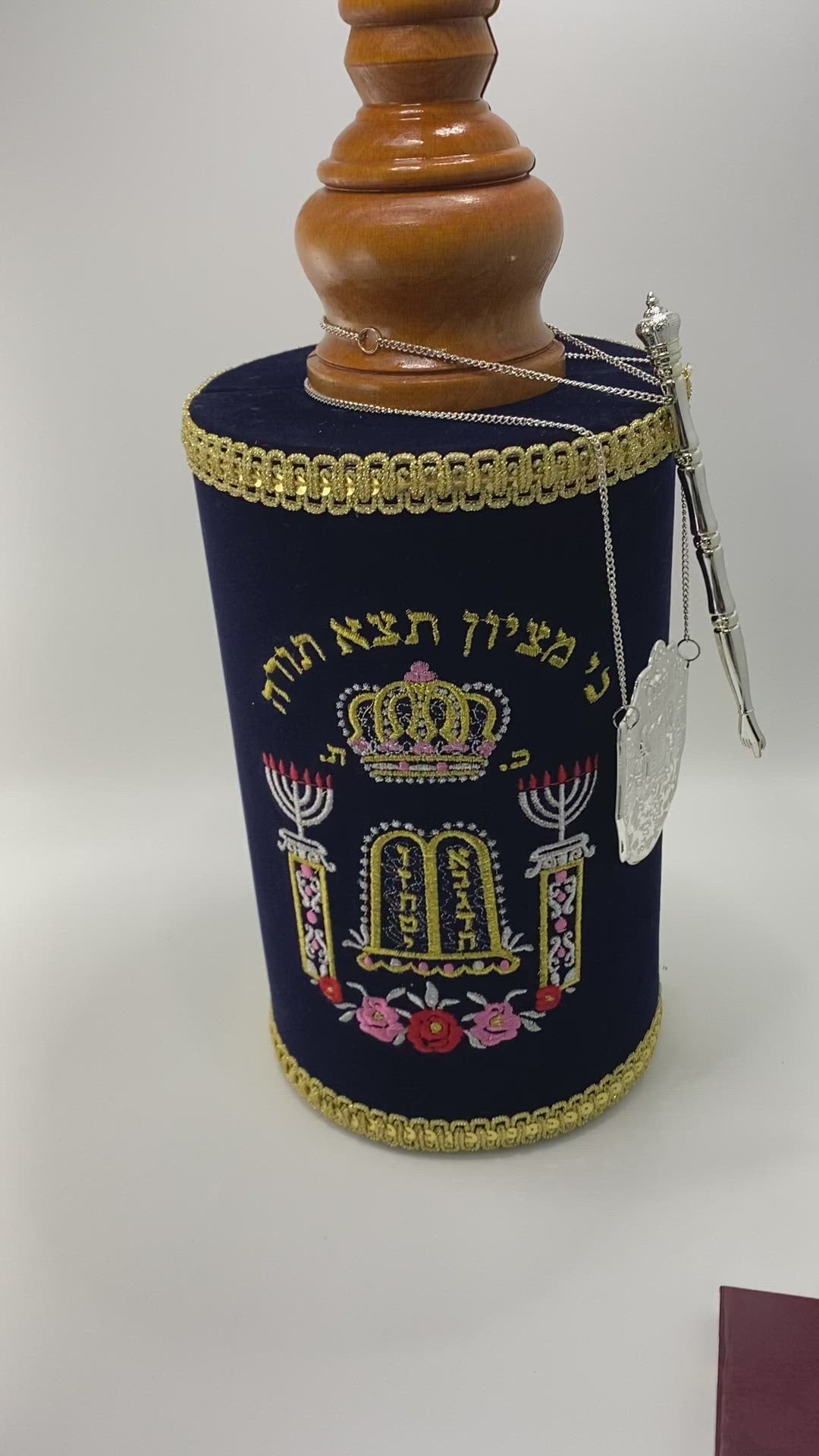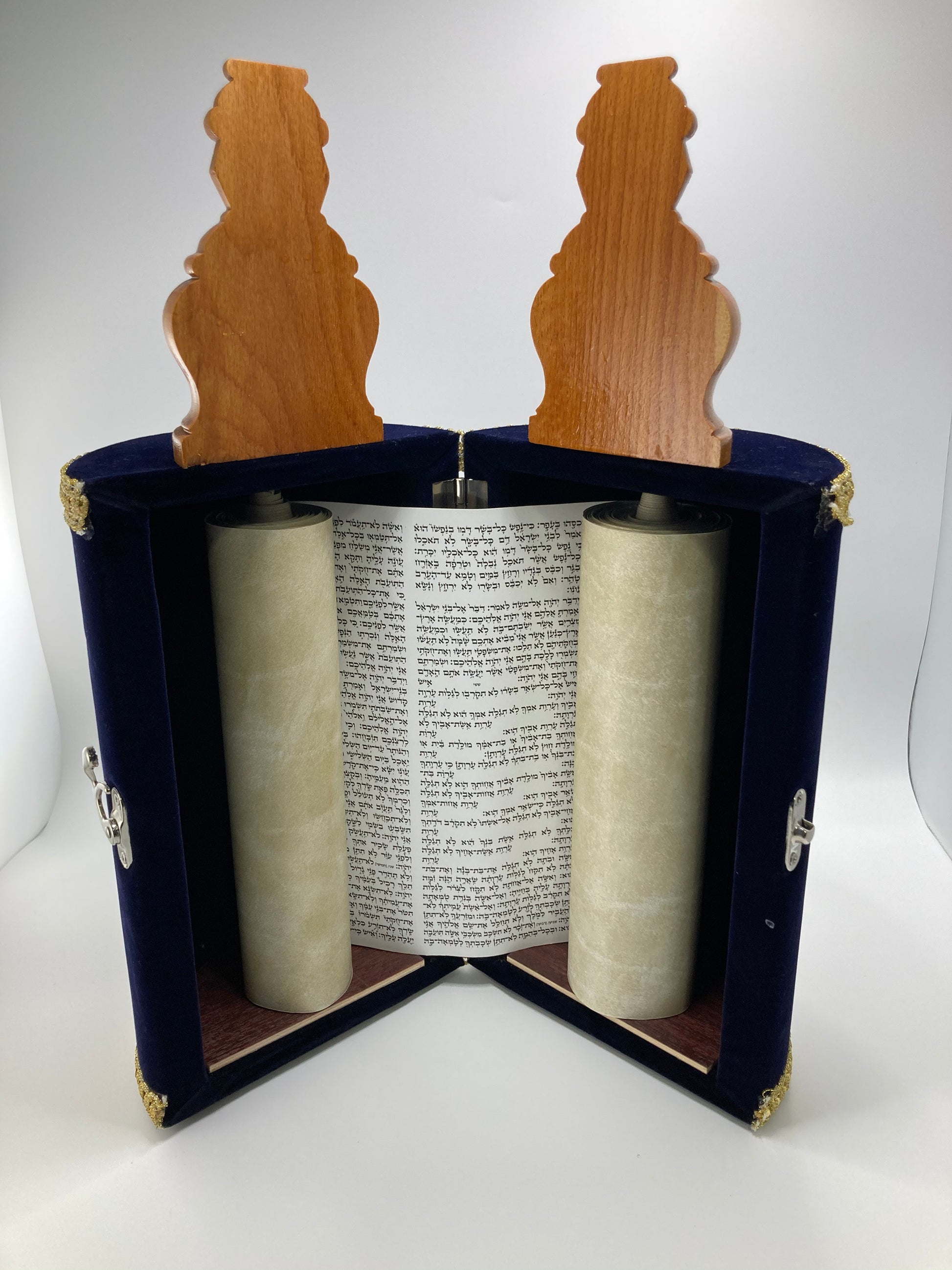 Sefer Tora tamaño grande, de madera y bordados finos include el Yad para la lecture y chapa.