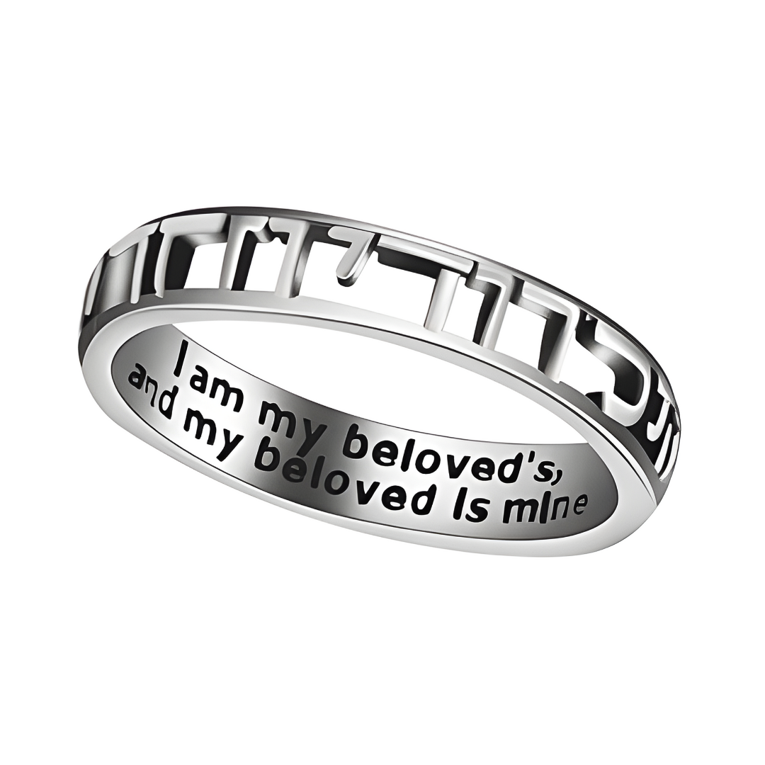 Anillo delicado y significativo, diseñado especialmente para la mujer, con la frase “I am my beloved’s and my beloved is mine” grabada en el interior. ¡Una declaración íntima de devoción y conexión eterna!