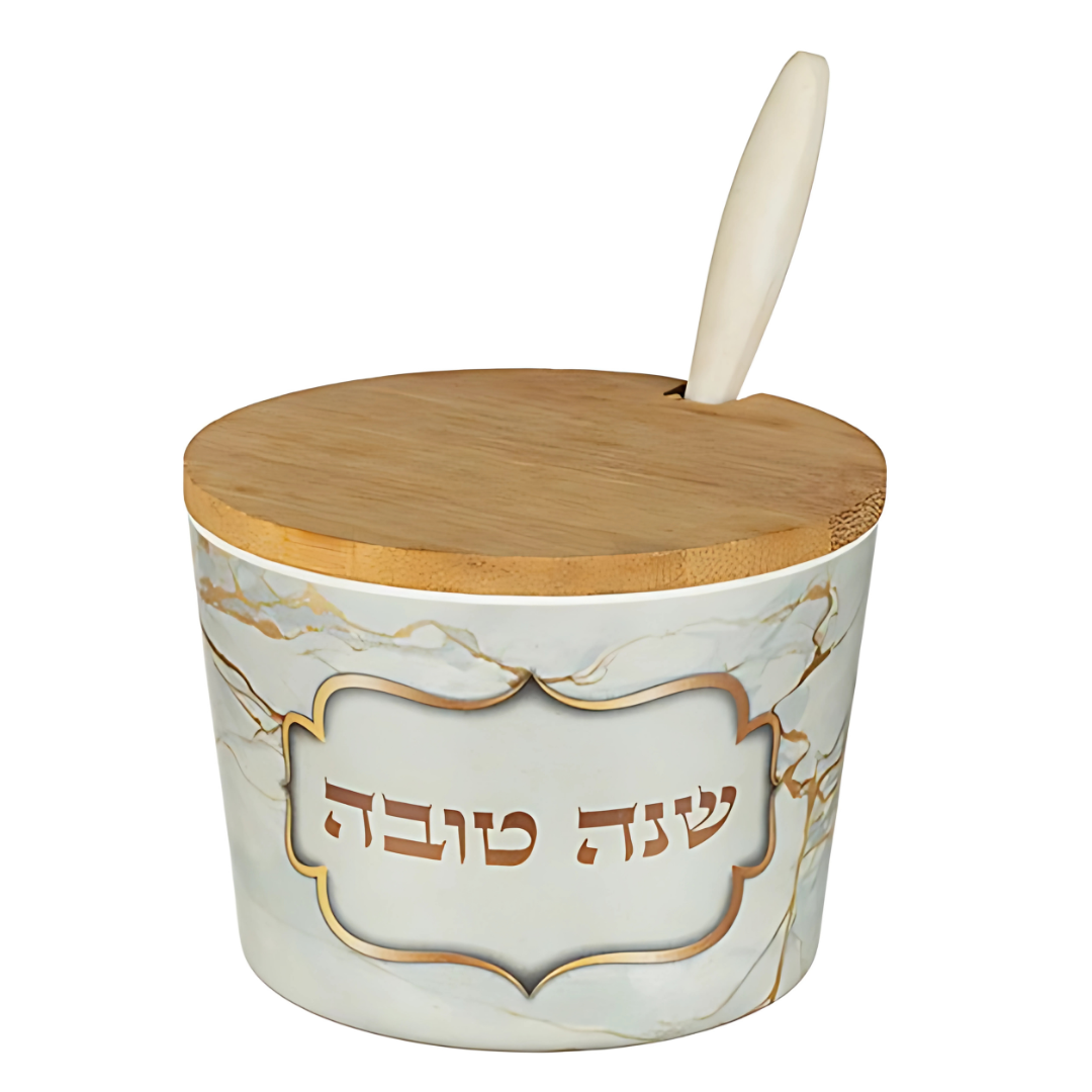La Base para la Miel "Shana Tova" es mucho más que un simple soporte: es una pieza elegante y significativa que eleva la tradición de mojar manzanas en miel durante Rosh Hashaná. Inspirada en las bendiciones del año nuevo judío, esta base está diseñada para contener la miel de manera hermosa y ordenada, añadiendo un toque especial a tu mesa festiva.