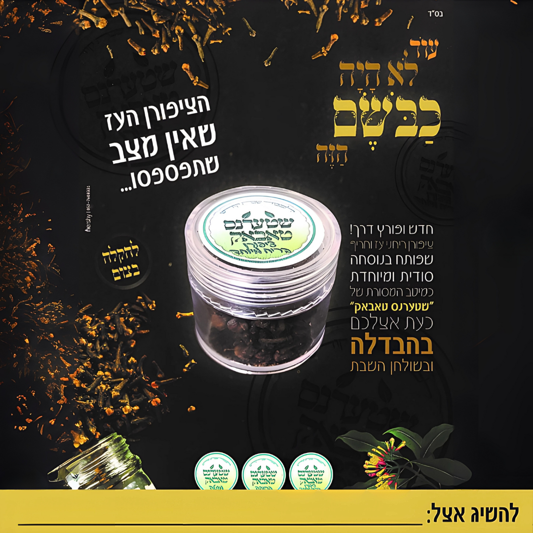 Haz que tu ceremonia de Havdalah sea aún más especial con los Besomim Clavos y Menta. ¡Haz tu pedido ahora y despídete del Shabbat con dulzura y devoción!