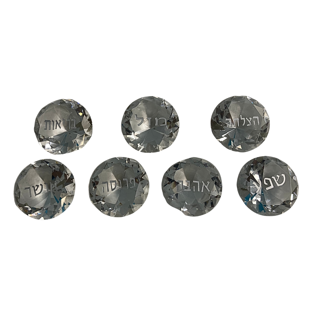 Estos hermosos símbolos de las 7 Bendiciones están diseñados para atraer riqueza, protección y todo lo bueno a tu vida. Inspirados en la simbología del número 7 dentro del Judaísmo, cada símbolo está grabado en diamante y lleva escrita una bendición hebrea específica.
