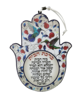 Linda hamsa en madera y Epoxy para colgar en la puerta oh en las paredes del hogar, con granadas y pajaros. Codigo para la bendicion de la casa.