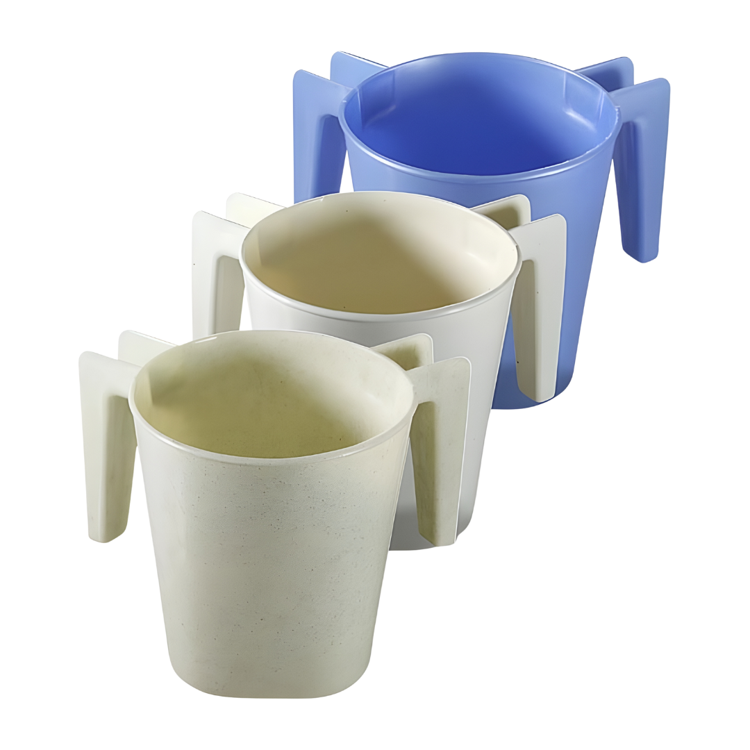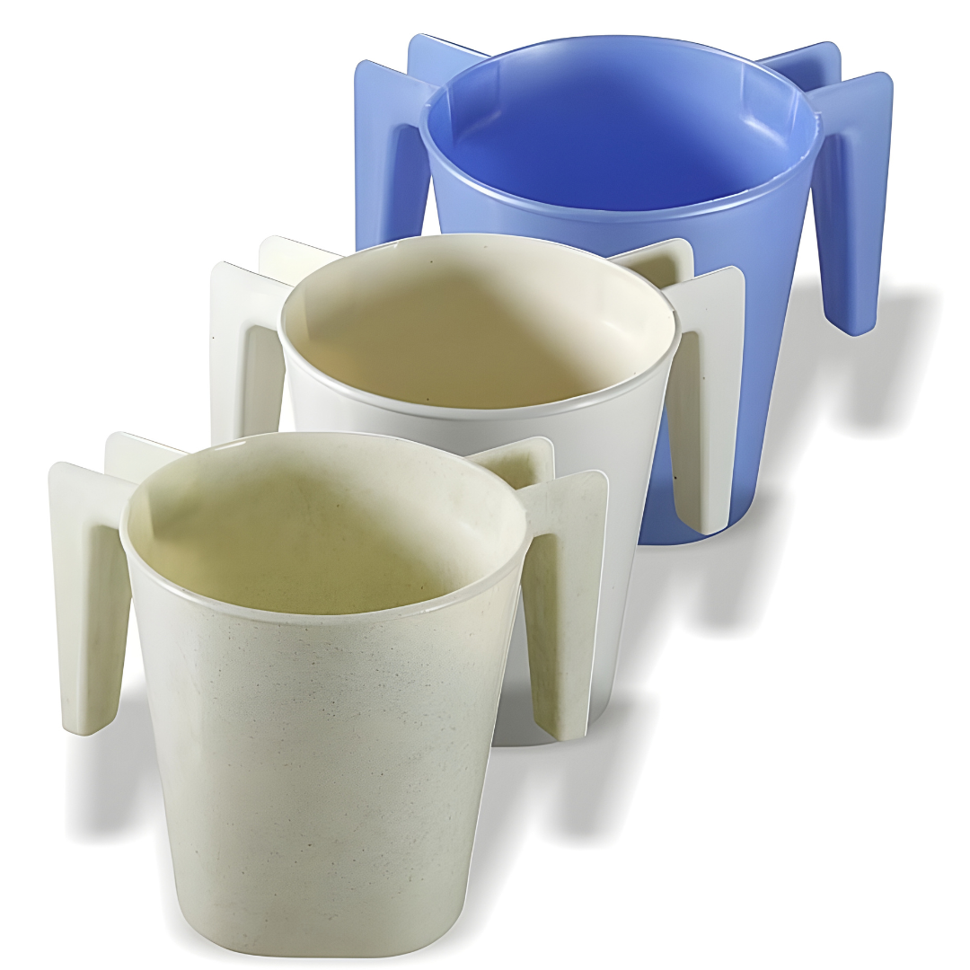 Recipiente plástico kasher, ligero y accesible, diseñado para el lavado ritual de manos antes de comer pan.