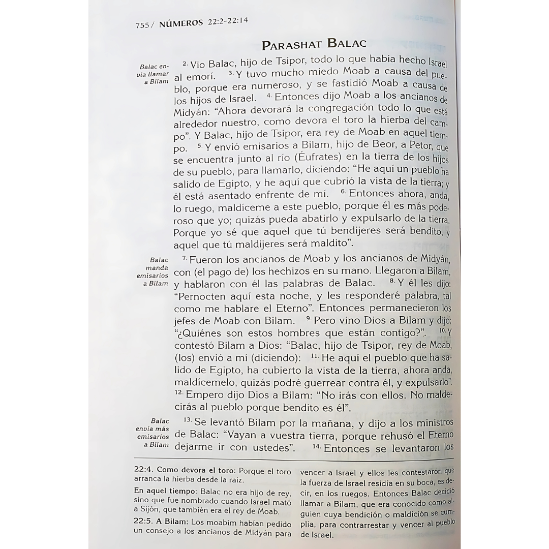 La Torá: Con Haftarot - Heb-Esp-Comentarios es una edición integral del Pentateuco (Jumash) que incluye las cinco porciones de la Torá (Bereshit, Shemot, Vaikrá, Bamidbar y Devarim), junto con las correspondientes haftaráot de los Profetas (Nevi'im).