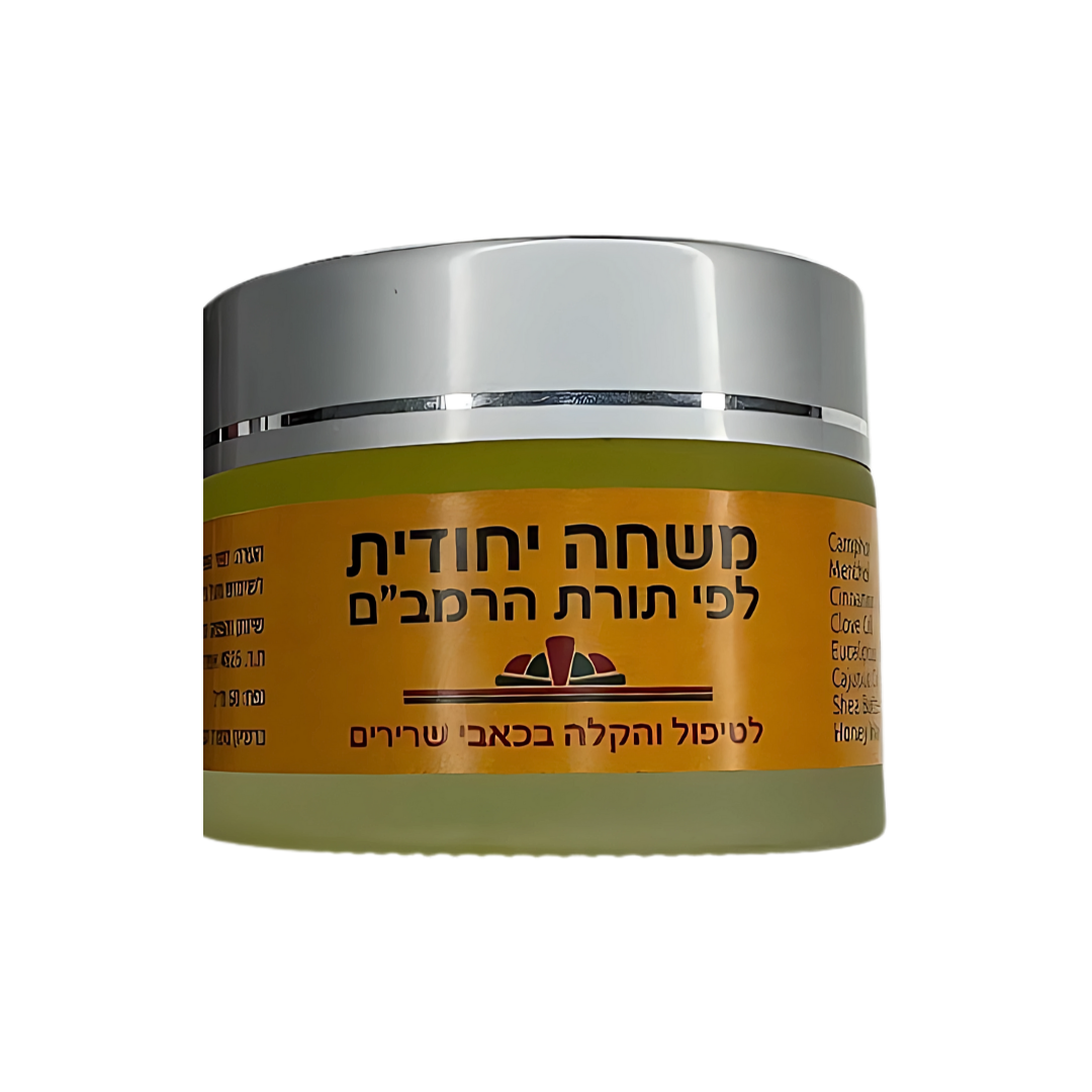 El Ungüento "Sanidad" Rambam es una solución natural y efectiva para aliviar dolores musculares, tensiones en tendones, dolores de cabeza y cualquier tipo de molestia corporal. Inspirado en las enseñanzas del Rambam sobre salud y bienestar, este ungüento combina tradición ancestral con propiedades relajantes para brindarte comodidad y alivio.